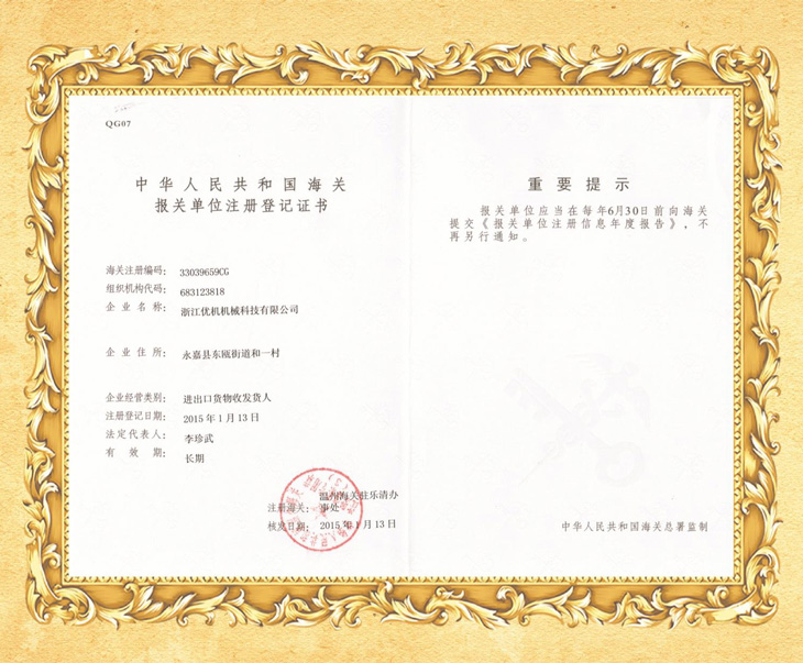 自营出口权证书