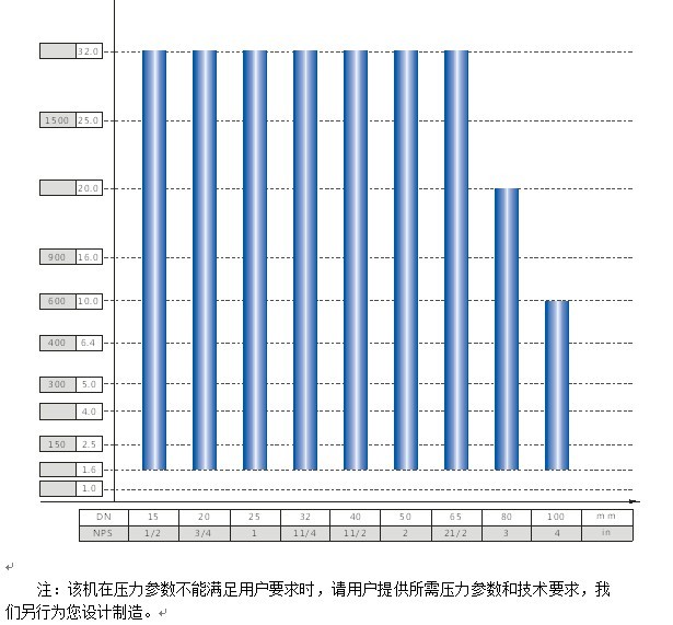 3.4   JWZQ-400型(潜水式) (特制型)阀门公称通径与公称压力试验范围
