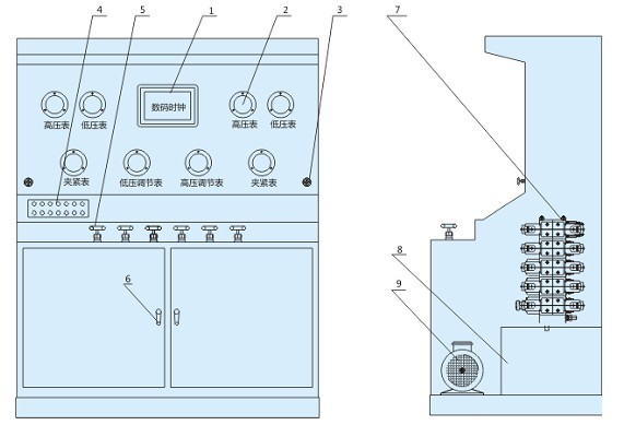 1. 数码时钟 2. 压力表 3. 压力表开关
