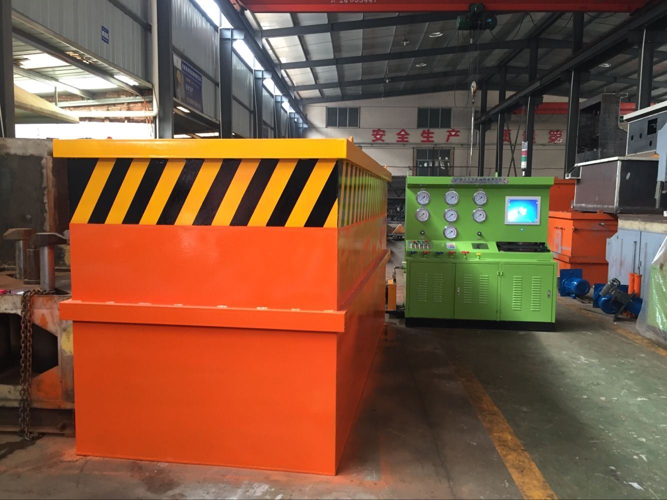 本机集机电、液压、试压、液体介质贮存循环使用于一体,具有功能完善、性能稳定、自动化程度高等特点。广泛用于公称通径DNl 5-600mm的直通式法兰及螺纹连接各类高、中、低压阀门的强度、密封和泄漏量等各项性能测试。测试介质:水、气、油。最高密封试验压力 32.0MPa,强度48 0MPa,本设备广泛用于阀门制造业和石油、石化、核电、化工等使用、阀门维修部门等单位的一种先进理想的阀门试压检验设备