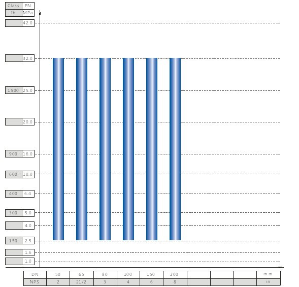 2 、 JWT-200型 阀门公称通径与公称压力试验范围