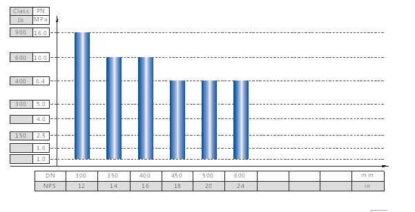 The test range of valve nominal diameter and nominal pressure for JWT-600 model