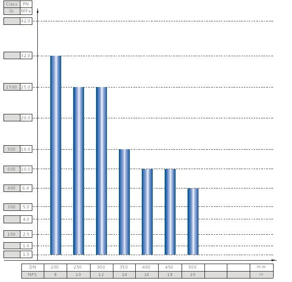 The test range of valve nominal diameter and nominal pressure for JWT-500 model