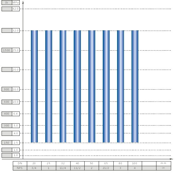 The test range of valve nominal diameter and nominal pressure for JWT-100 model