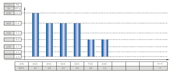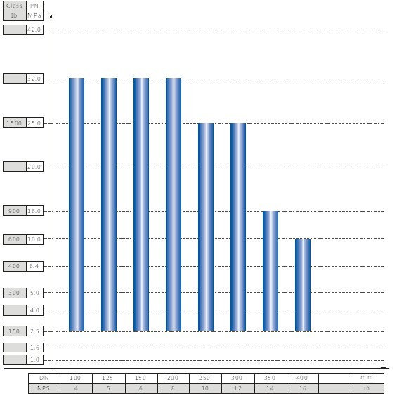 The test range of valve nominal diameter and nominal pressure for JWT-400 model