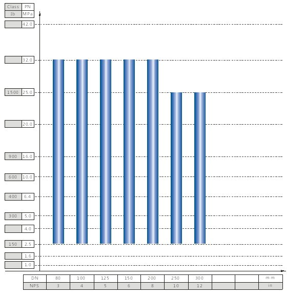The test range of valve nominal diameter and nominal pressure for JWT-300 model