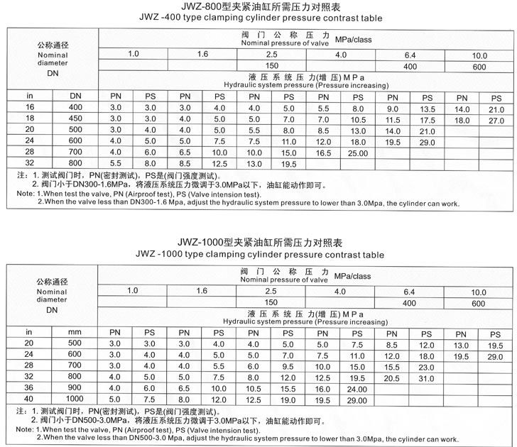 5.8 JWZ-800型 阀门公称通径与公称压力试验范围