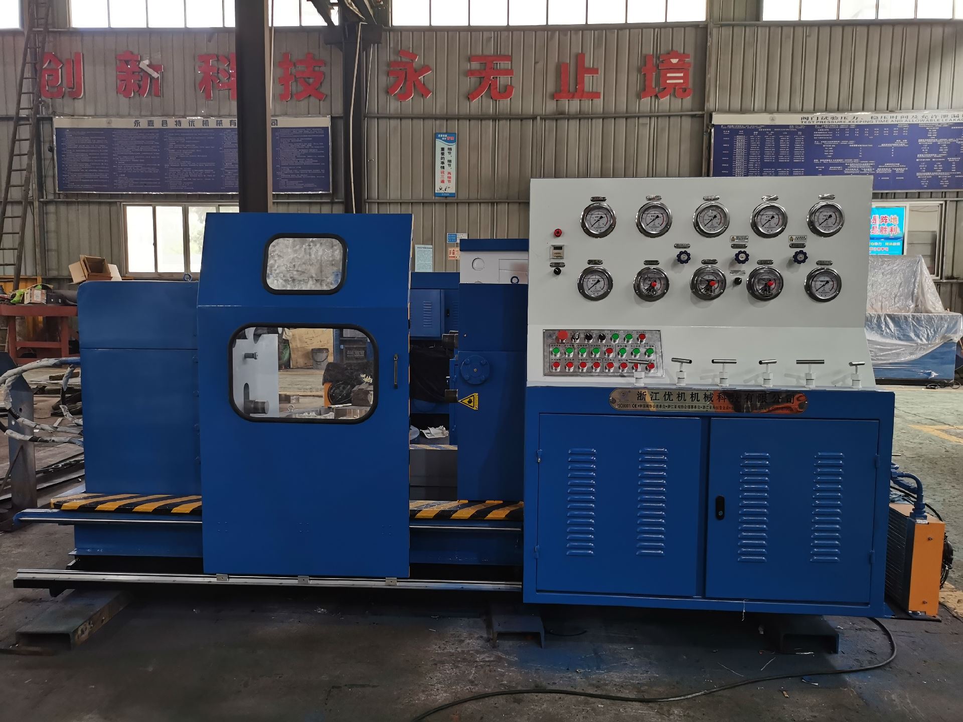 本机集机电、液压、试压、液体介质贮存循环使用于一体,具有功能完善、性能稳定、自动化程度高等特点。广泛用于公称通径DNl 5-1000mm的直通式法兰及螺纹连接各类高、中、低压阀门的强度、密封和泄漏量等各项性能测试。测试介质:水、气、油。最高密封试验压力 32.0MPa,强度48 0MPa。